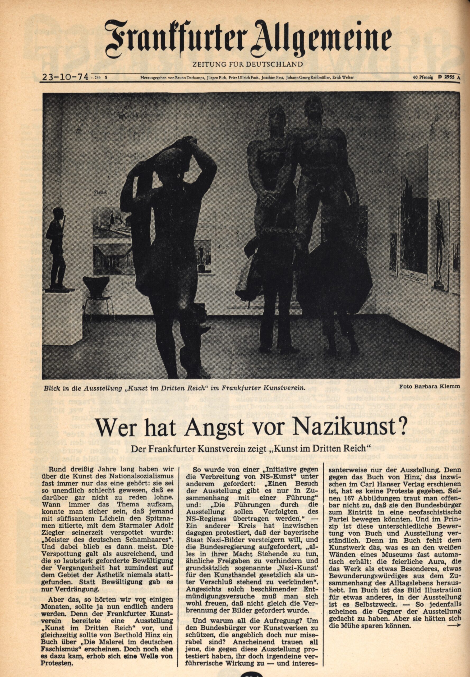 Anlass der kritischen Neuausrichtung des Fachs dürfte nicht zuletzt die Auseinandersetzung mit dem NS gewesen sein, wie sie 1970 auf dem Kongress in Köln u.a. durch Martin Warnke und Berthold Hinz gefordert wurde. Auch in Frankfurt war diese Auseinandersetzung präsent. Der erste Frankfurter Auschwitz-Prozess (1963–65), über den Warnke für die Stuttgarter Zeitung berichtete, oder die Ausstellung „Auschwitz. Bilder und Dokumente“ in der Paulskirche (1963/64) wurden weithin wahrgenommen. Dass zu einer kritischen Reflexion der Kunstgeschichte und ihrer Methoden auch der Blick auf ihre Erkenntnisinstrument gehörte, belegt das 2002 erschienene Heft der „Kritischen Berichte“ zum Thema „Die Bildmedien der Kunstgeschichte“.
