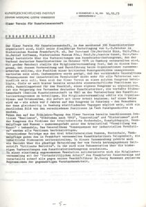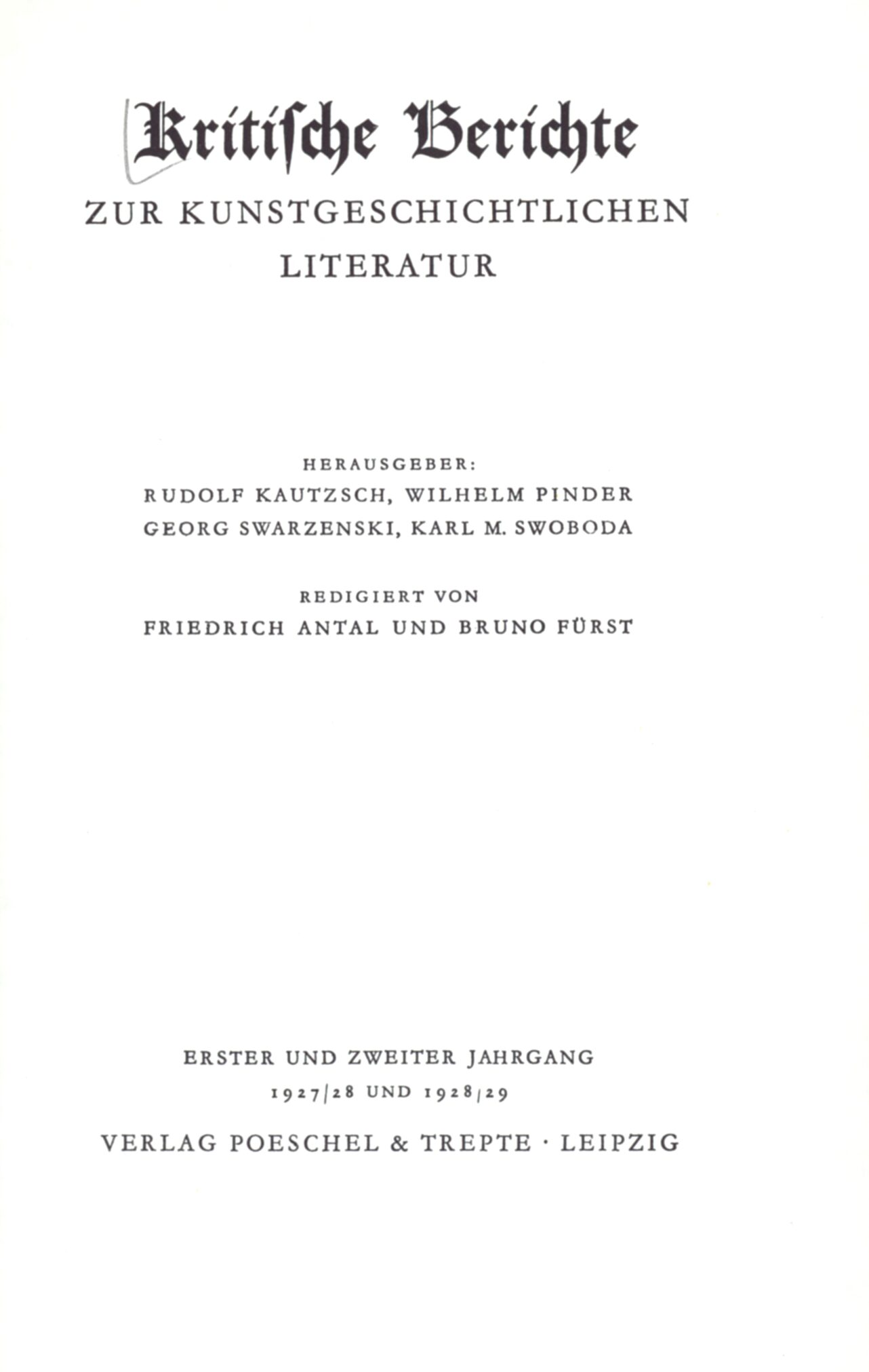 Die „Kritischen Berichte“ (→), die ab 1973 erschienen, wurden das publizistisches Zentralorgan des Ulmer Vereins, wobei sie sich namentlich auf eine Tradition beriefen, die mit Kautzsch und Swarzenski auch von Frankfurt aus betrieben wurden. Gemeint sind die „Kritischen Berichte zur Kunstgeschichtlichen Literatur“ (→), die ab 1927 gemeinsam mit Friedrich Antal, Wilhelm Pinder und Karl M. Swoboda herausgegeben, jedoch 1938 wieder eingestellt werden mussten.